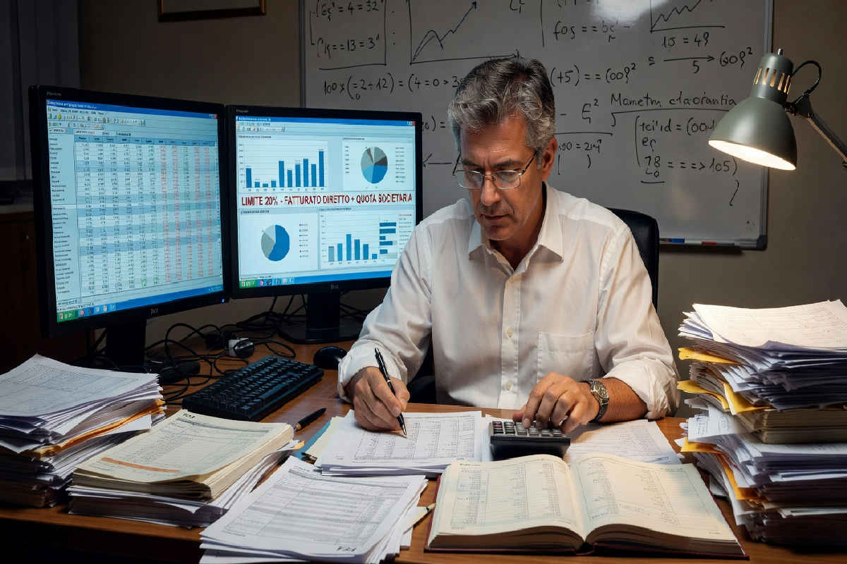Quando un commercialista supera il 20% tra il fatturato diretto e quello derivante dalla quota societaria, scattano problemi seri. Succede spesso che si guardino separatamente questi due numeri, senza sommarli, e si sottovaluti il rischio. Ma la legge non lascia scampo: quel limite va calcolato sul totale, non sulle singole voci.